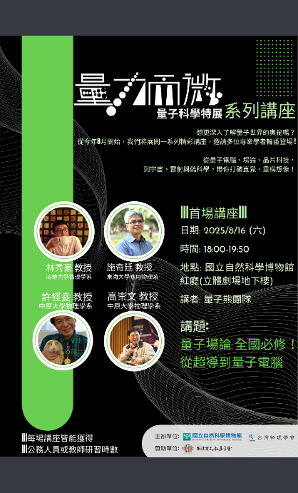【公告】社團法人台灣物理學會與國立自然科學博物館共同舉辦「量子科學系列 講座」