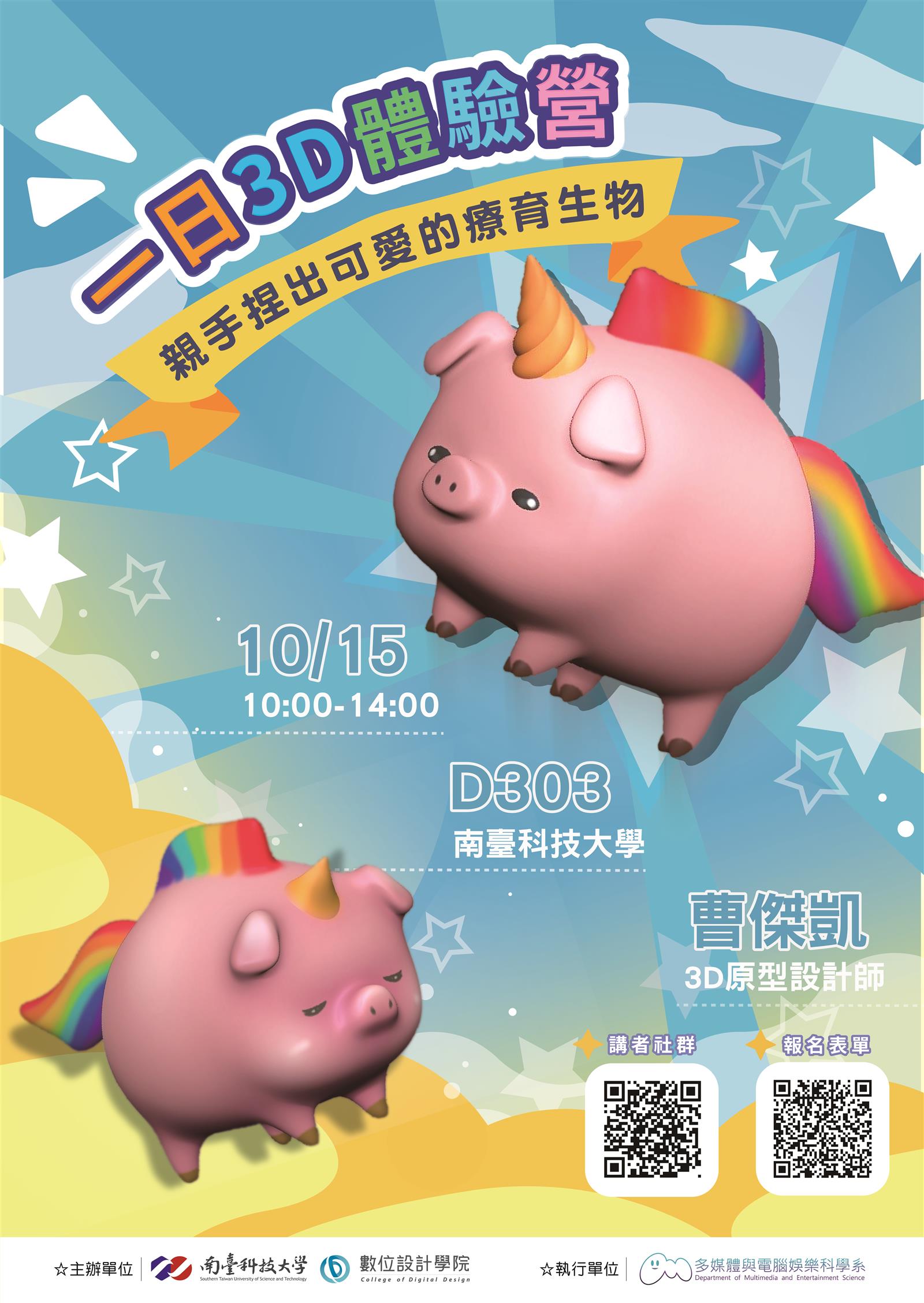 南臺科技大學辦理「一日3D體驗營」活動,活動內容詳如附件, 敬邀貴校師生蒞臨參加