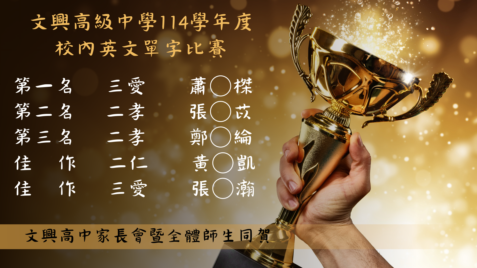 賀!114學年度校內高中英文單字比賽