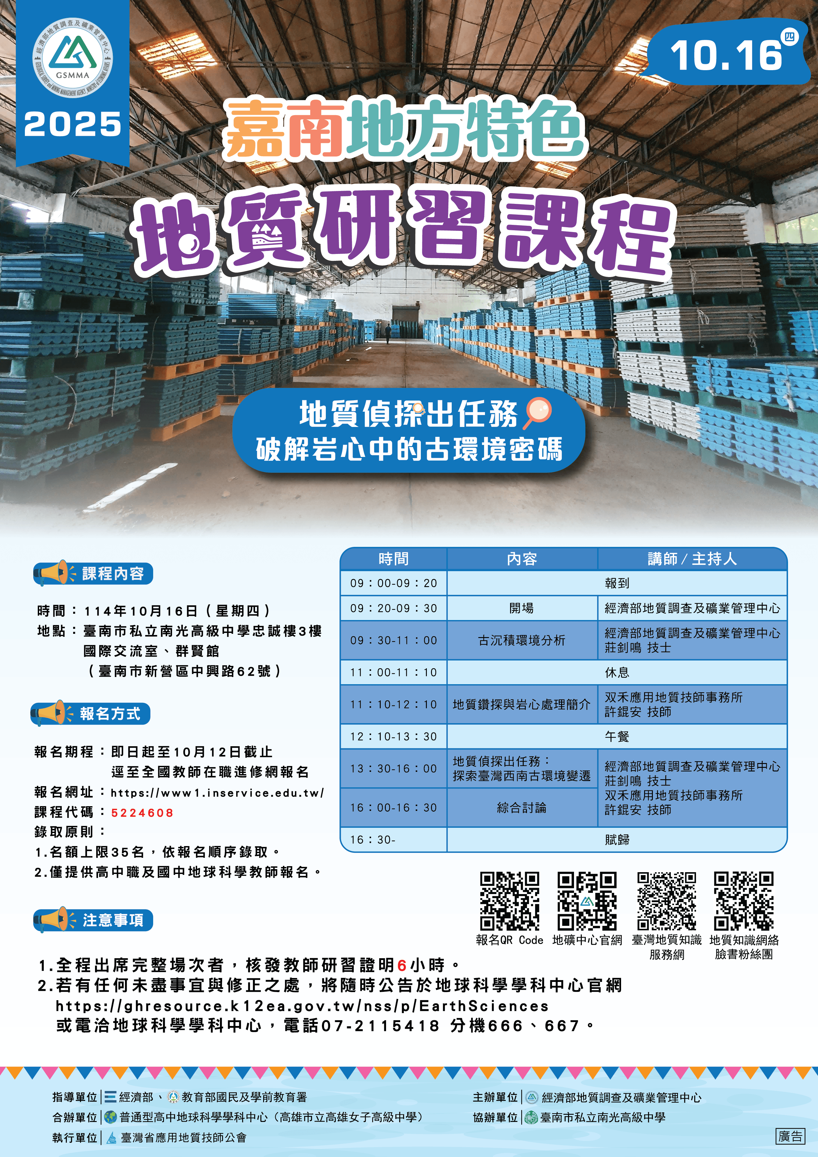 2025嘉南地方特色地質高中地 球科學教師研習【地質偵探出任務:破解岩心中的古環境密碼】