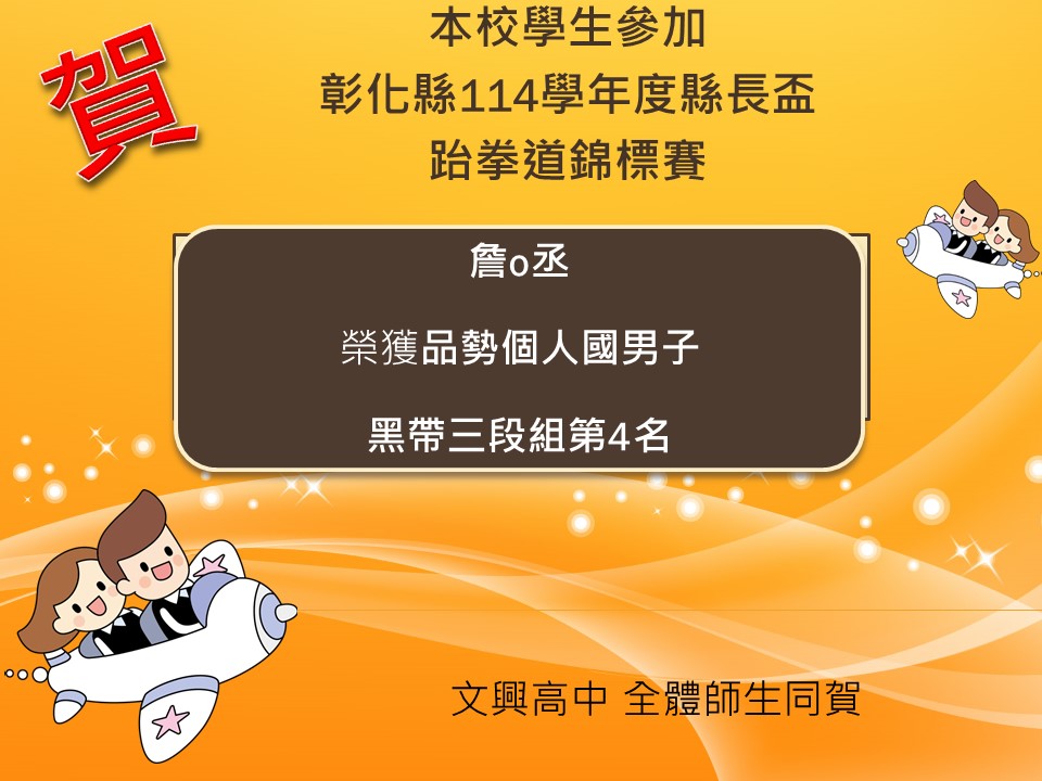 賀本校學生參加縣長盃跆拳道錦標賽榮獲佳績