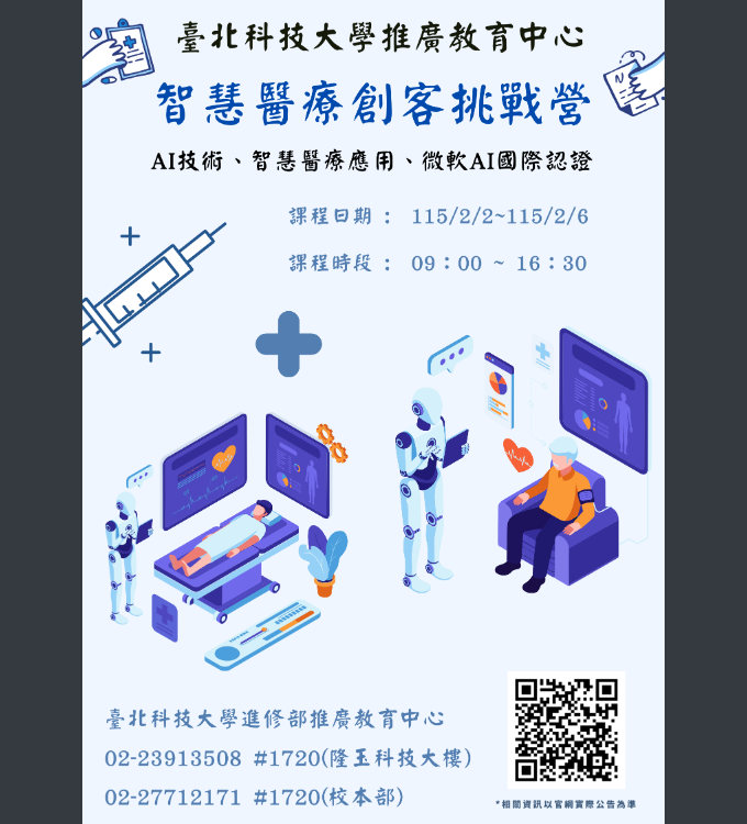 國立臺北科技大學進修部推廣教育中心開辦【智慧醫療創客挑戰營】活動訊息