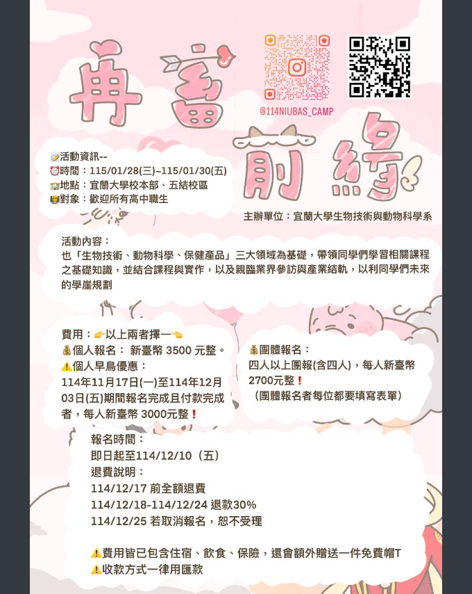 國立宜蘭大學生物技術與動物科學系舉辦114年學年度高中生寒假營隊「再畜前緣」