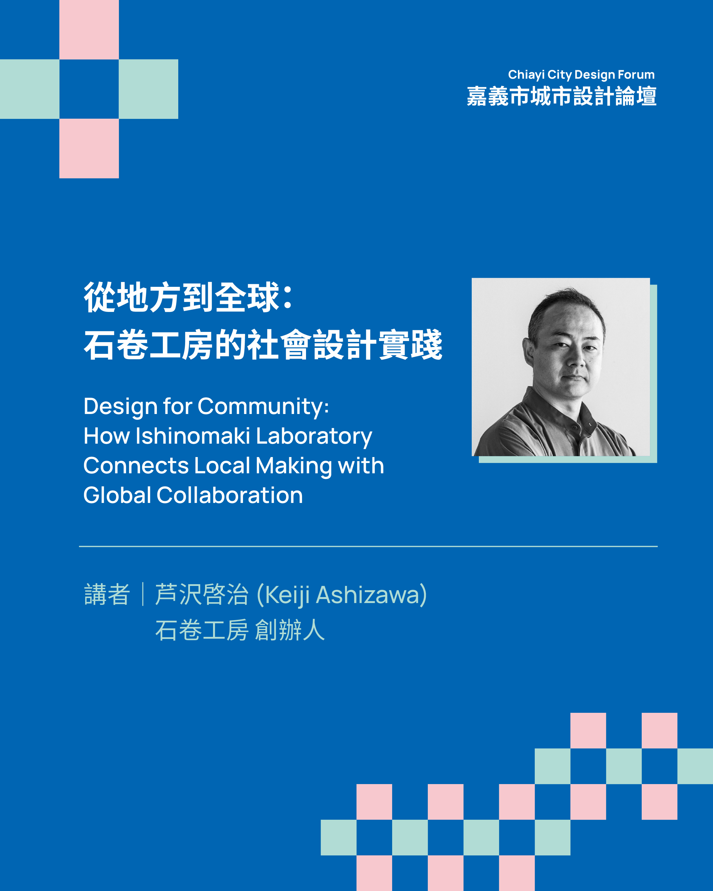 說明: 一、本論壇以「設計、社群與新連結」為題,邀請三位日本國際級設計大師,分別從生活工藝、社會設計、建築三條軸線,帶來對「城市未來」的前瞻觀點。透過設計跨領域的交流與對話,展現設計不僅是形式,更是驅動城市轉變的方法。本論壇將在城市博覽會期間在嘉義市舉行,期待在多元激盪中開啟設計領域與城市發展的深度對話。 二、詳細報名資訊如:https://reurl.cc/QVeeQb。 三、如有未盡事宜,請洽本案活動執行廠商承辦人:吳秉南先生,連絡電話:0901-152618。