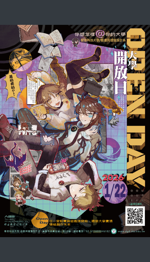 樹德科技大學動畫與遊戲設計系訂於115年1月22日(四)假本校設計大樓,舉辦【Open Day:你想怎樣@你的大學】