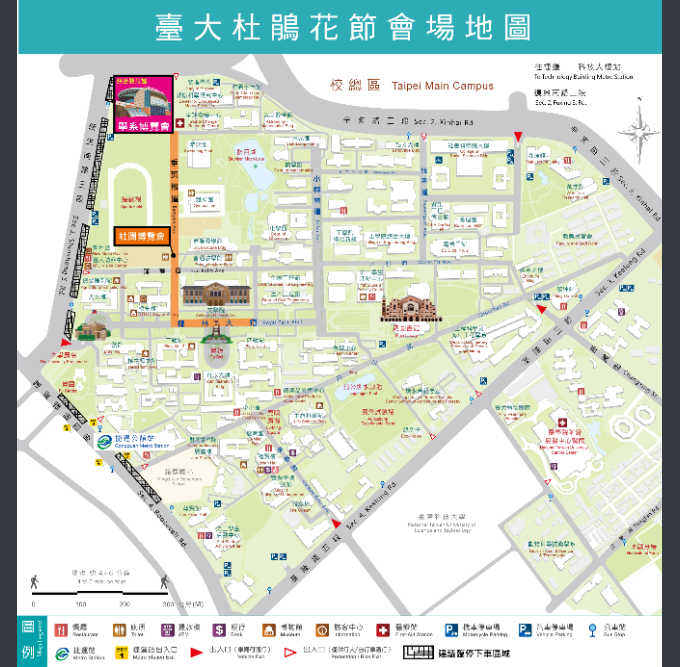 一、「2026年臺大杜鵑花節」學系博覽會及相關活動簡介: (一)115年3月14日(星期六)上午於臺北市大安區羅斯福路四段1號本校校總區舉行揭幕式。 (二)學系博覽會:現場提供各學系特色介紹等相關資訊;會場設於校總區綜合體育館,開放時間為115年3月14日及3月15日(星期六、日)上午9時30分至下午3時30分。 (三)學生社團博覽會及社團表演活動設於綜合體育館周邊之戶外攤位,時間為115年3月14日(星期六)上午9時30分至下午4時。 (四)各類現場活動及各類導覽歡迎參加,部分場次需事先報名。 二、網站資訊:詳細活動流程及參觀資訊將於活動前2週公布於活動網站(https://event.ntu.edu.tw/azalea/2026/)。 三、校總區交通資訊: (一)捷運松山新店線:至公館(臺灣大學)站下車,3號出口可至本校大門口。 (二)北市聯營及其他公車:臺大或公館站下車。 (三)外縣市搭乘火車者:可由臺北火車站轉乘捷運淡水信義線至中正紀念堂站,再轉乘捷運松山新店線,至公館(臺灣大學)站下車,3號出口可至本校校門口。 (四)校內地圖請由「臺大首頁」之「認識臺大」進入選擇「地圖與交通資訊」(http://www.ntu.edu.tw/about/map.html)。 (五)本校不提供大型遊覽車之停車空間,建議搭乘大眾運輸系統。團體如需於本校大門口廣場上下車,須事先申請,表單將於3月2日至3月6日於訪客中心網站(https://visitorcenter.ntu.edu.tw/)開放填寫。考量交通安全,同時段廣場上有大型車輛容留限制,進出廣場請務必配合警衛指示;如廣場上已有遊覽車臨停,為提高上下車效率,避免影響周圍交通,亦建議參考本校周邊適當臨停路段(周圍路網圖如附圖),讓人員下車後,以徒步方式進入校園;上車集合亦請留意自身安全。建議行前通知告知交通安全事項。