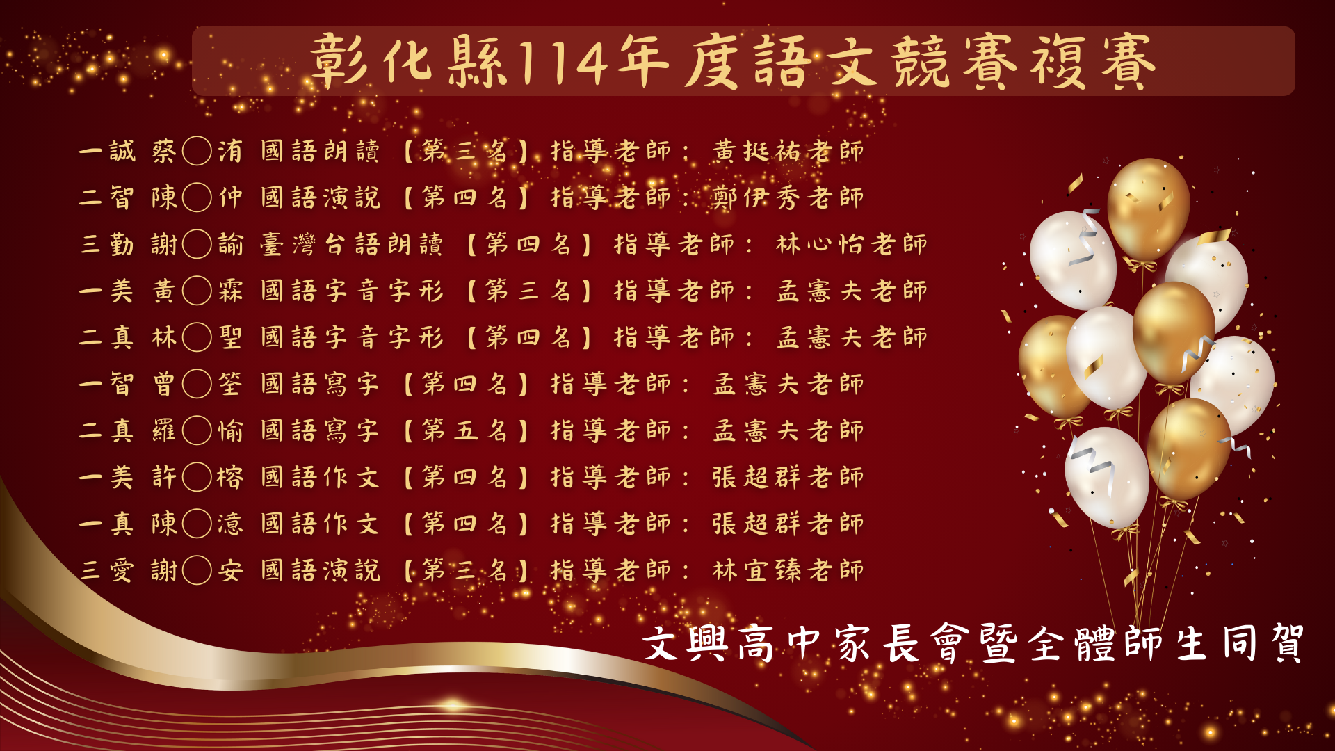 賀 本校學生參加彰化縣114年度語文競賽複賽,成績優異