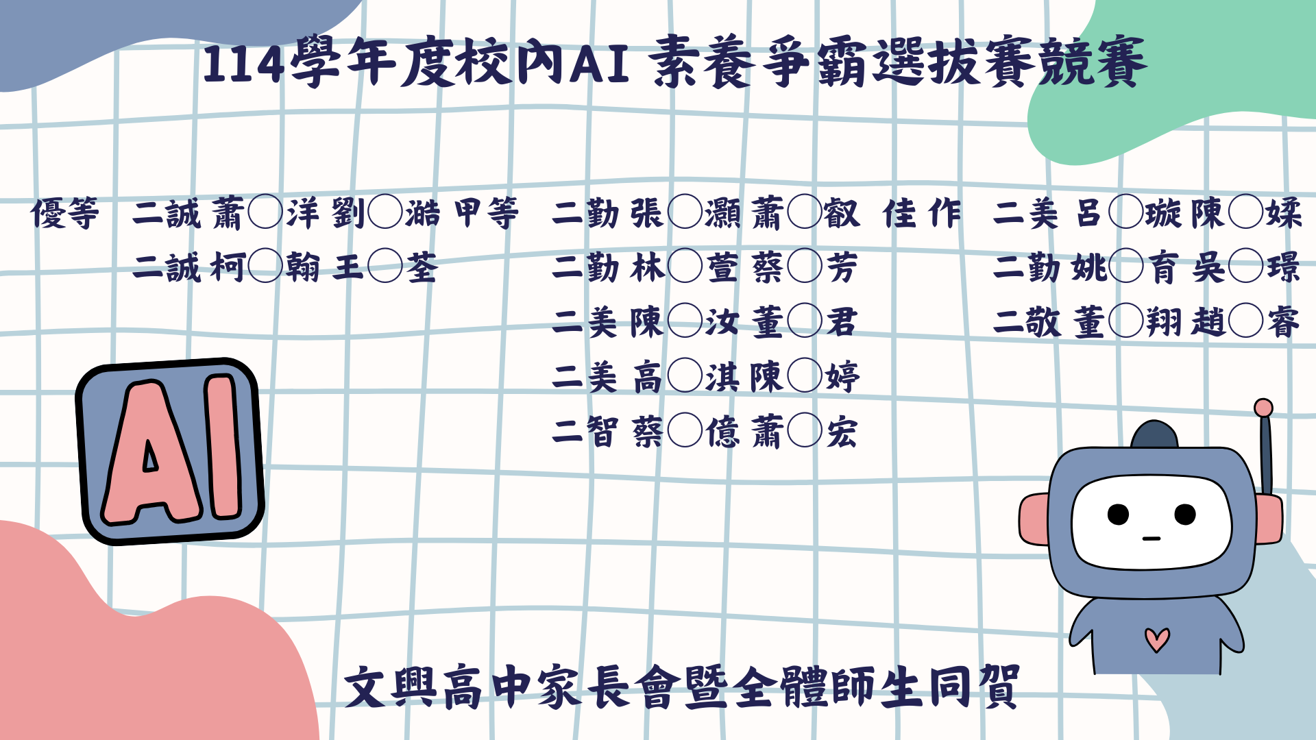 賀!114學年度校內AI 素養爭霸選拔賽競賽
