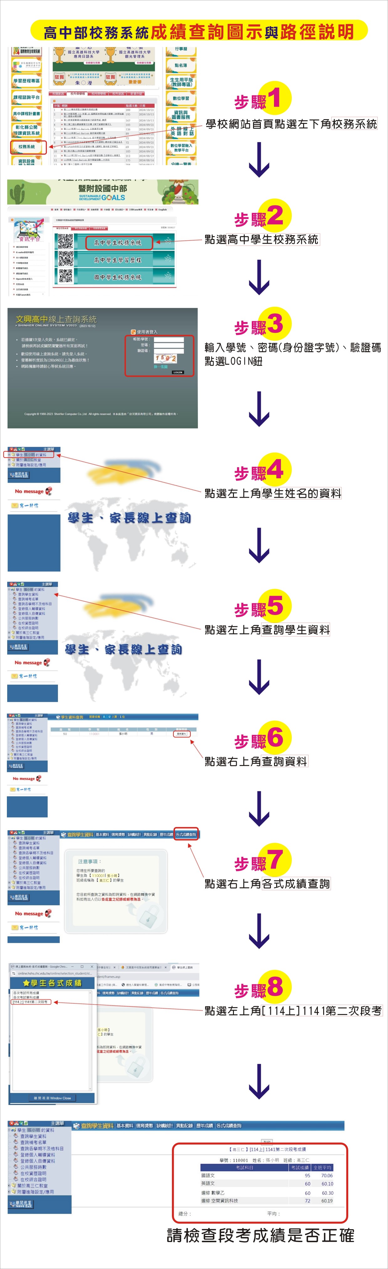 1141第二次段考-高中部校務系統成績查詢圖示與路徑說明